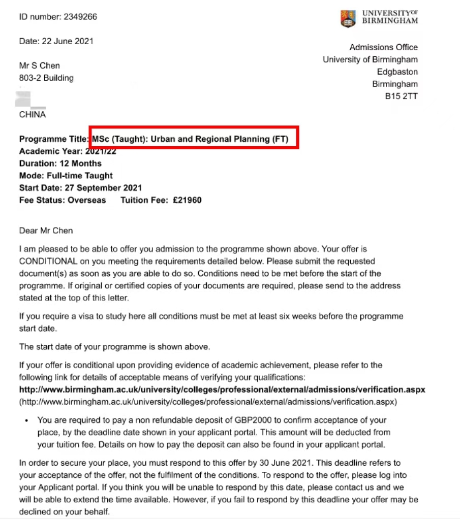 Chen 同学 伯明翰大学