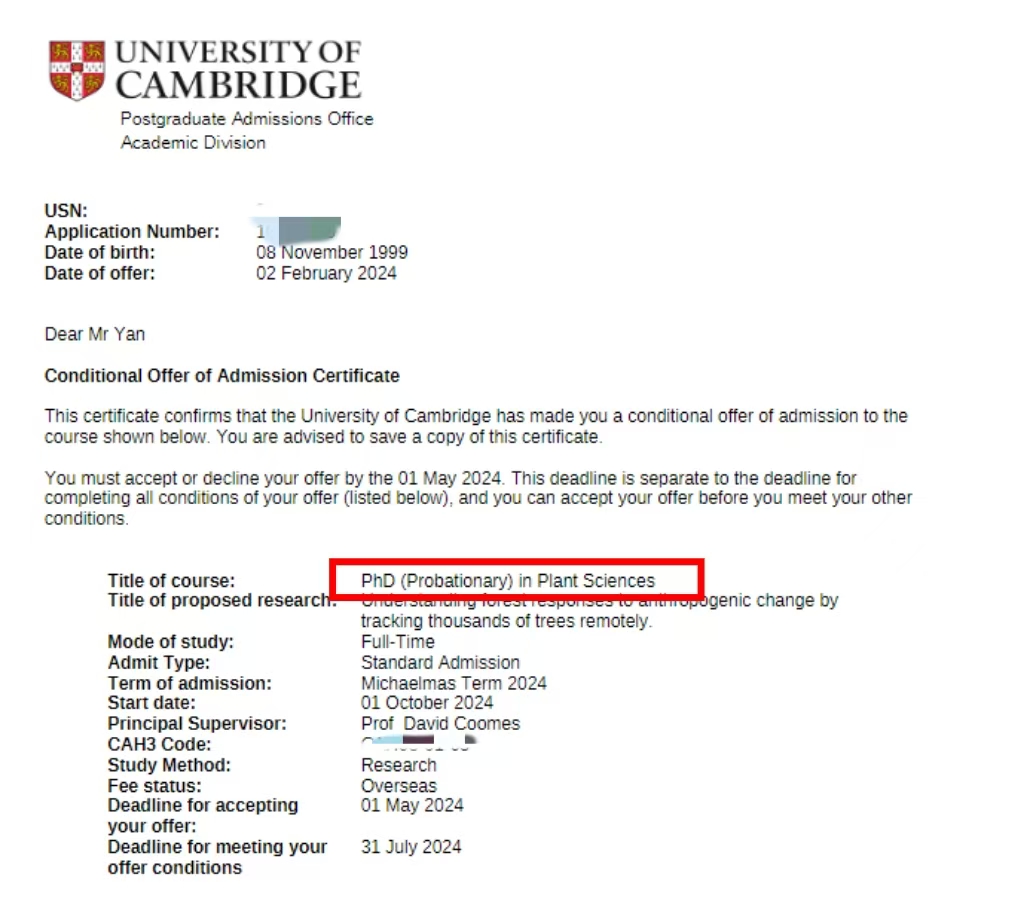 Yan 同学 剑桥大学