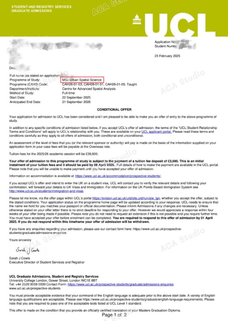 - 硕士:伦敦大学学院 城市设计